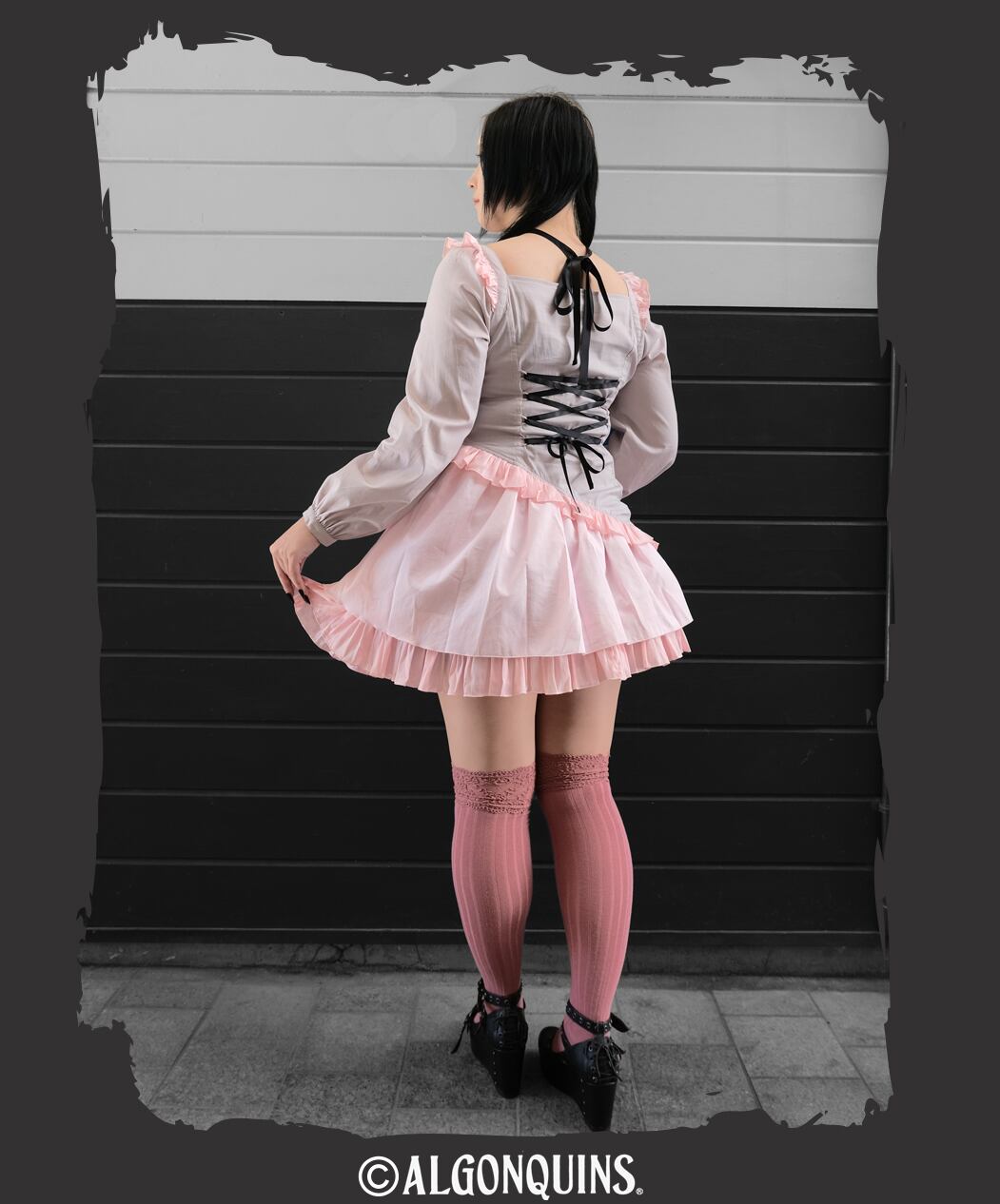 【フリルモチーフxレースアップバイカラースクエアデコルテワンピース】